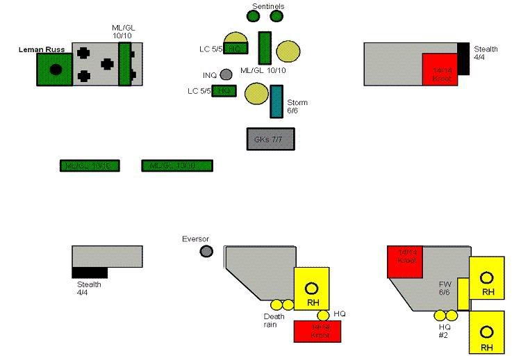 Needless to say, I was pleased to see the basilisk stay in its case. I had yet to see a DH list heavy on guard or AT weapons, so I hoped my Hammerheads would have free run of the field. We'll see.