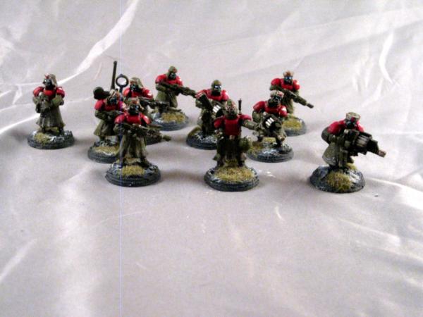 So, let's get this party started. I'm doing a greatcoated Imperial Guard army using primarily the Wargames Factory greatcoated Shock Troopers for bodies, Pig Iron Kolony Militia winter heads for headgear, and standard