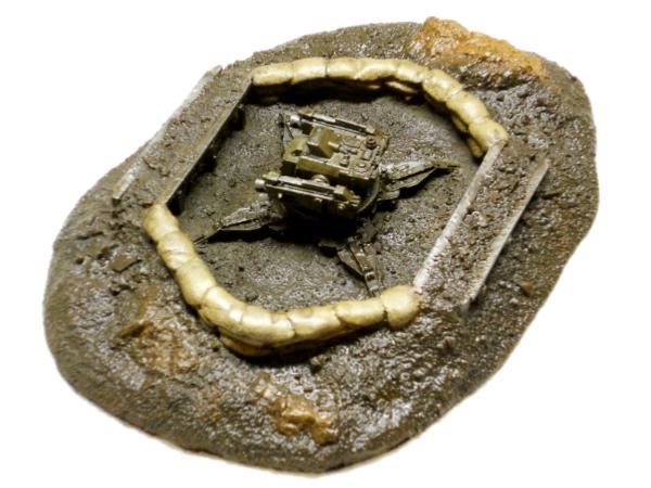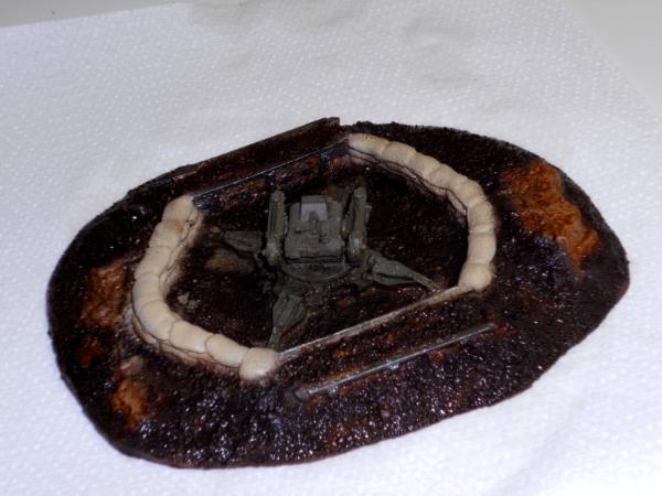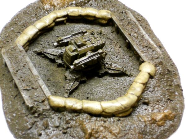 Doing this as an airbrush project. All that's left is to attach the guns to the Sentry Gun proper, do the campaign decals, add some static grass and flock outside the dugout, and some rust on the corrugated metal components.