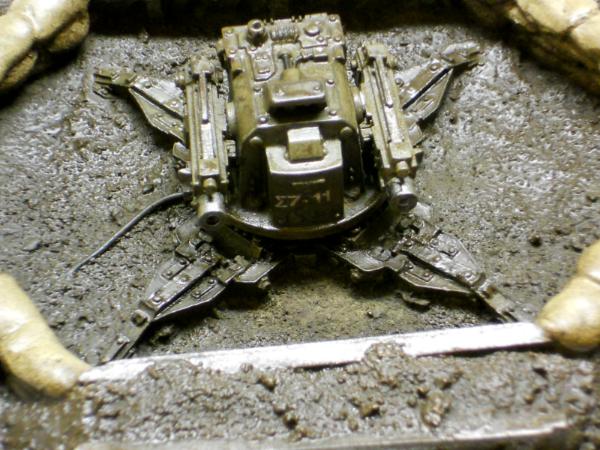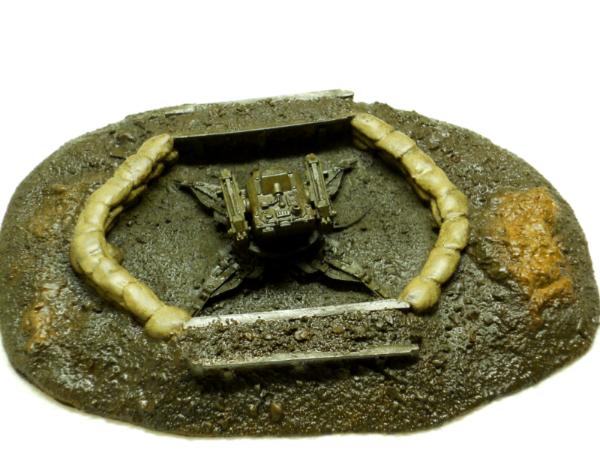 @alarmingrick I'm thinking that the best way to add some more detail is some netting draped over the main body of the turret and the guns, or some rusted barbed wire strung up.