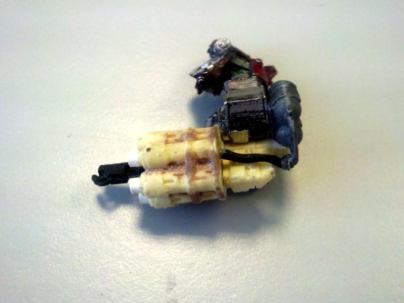 TL shoota, made a mold of a warbiker gun. Molded it a few time, cut it down to the barrels. an super glued them together. I stuck that to the filed down arm. got some