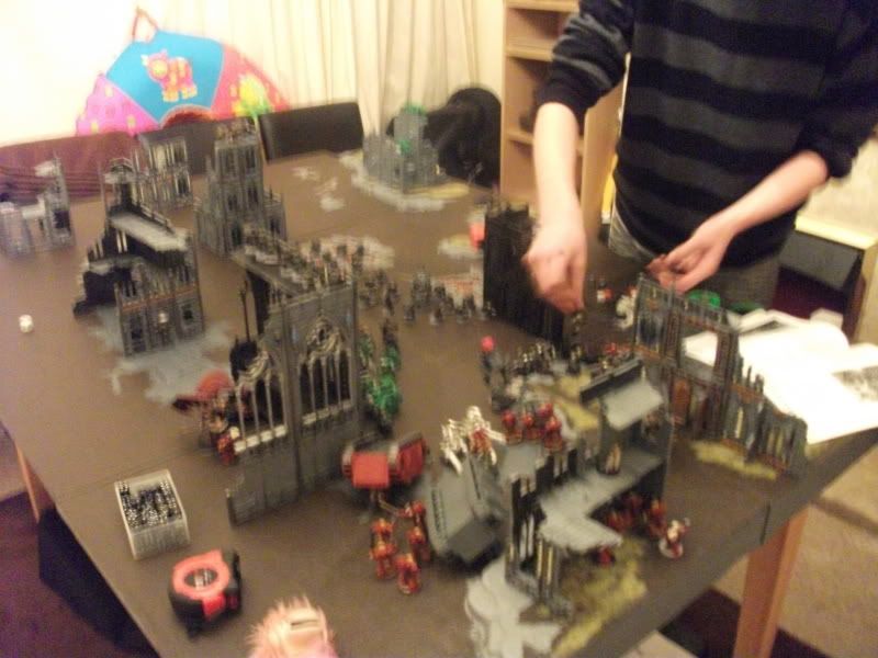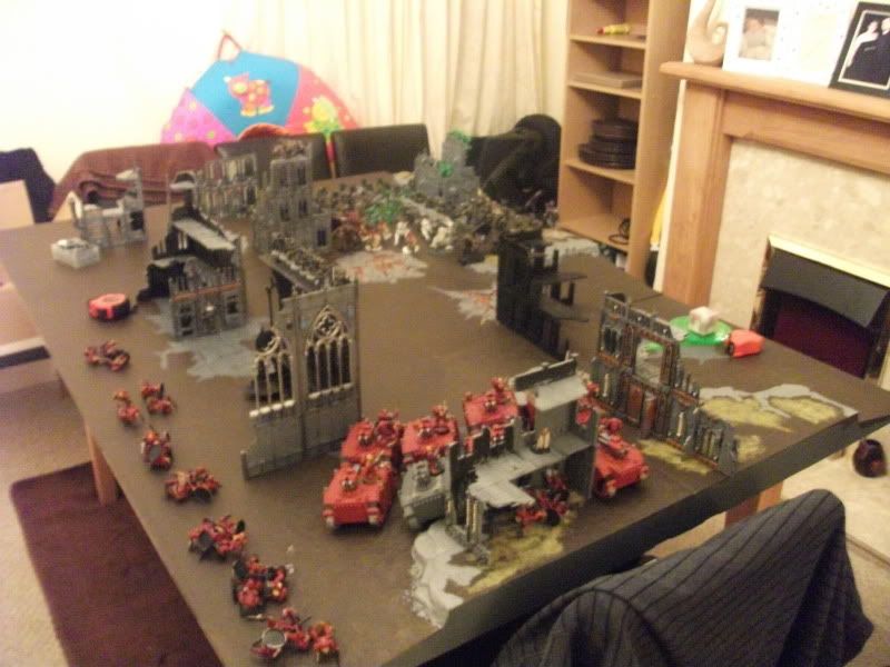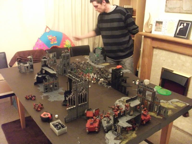 Only mistake is my deployment looking back. I should have deployed using the shrine as a benefit hiding Razorbacks behind it, that means the Lootas couldn't shoot them and the Deffkopters wouldn't be able to reach them. After the turn 1 damage from Craig wrecking half my tanks and stopping one from firing one turn and then with my own crappy shooting hitting nothing the game was pretty much won already, it went from bad to worse when squads failed to blow up walkers with meltas and reach assault.
