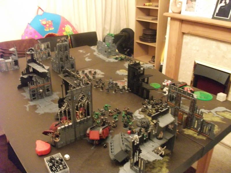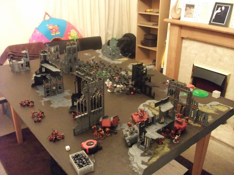 Well that was perhaps the worst receiving end I've had in a game for a long long time, perhaps ever actually. I think I killed about 6 Boyz, wounded a Big Mek, shaken a Deff Dread, wrecked a Kan and kill 3 Lootas - extremely crap dice rolling :( . Not very good at all.