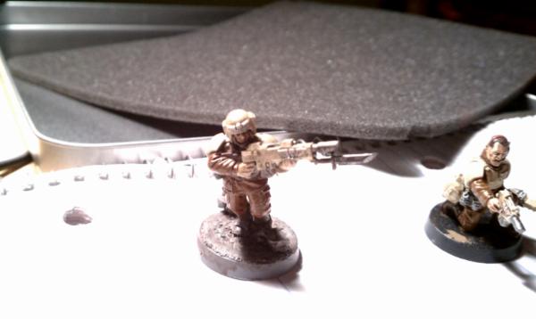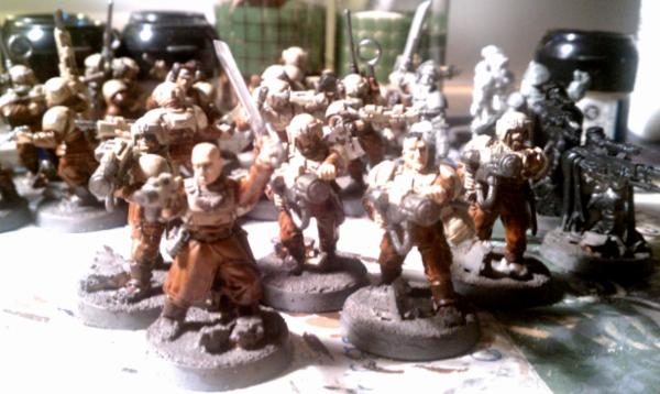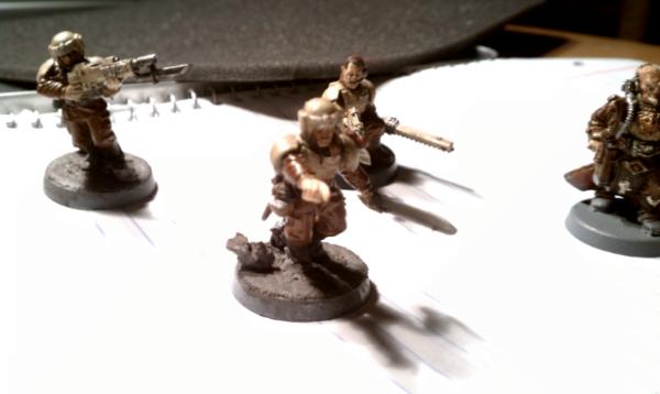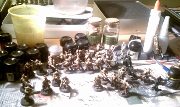 WIP pics are always good. Painting the arms by themselves is a must. I learned that one the hard way the last time I made a Cadian army!
