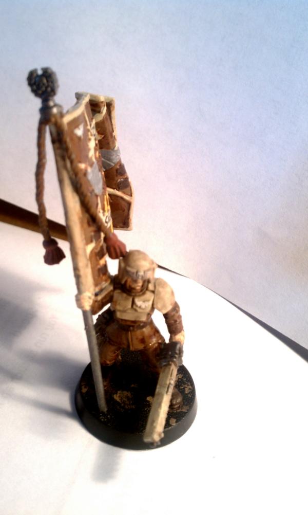 @ Brother SRM thanks for the tips i will try to apply them! i Couldnt find the macro on my camera.. @ 40kFSU You probably couldnt tell due to the pics but i am using a devlan mud wash over the whole mode. haha so good call there. thanks for the comment! I'm going to be trying new picture techniques so hope fully get okay shots. Automatically Appended Next Post: Hey guys so i tried out some new camera techniques, put them in front of white paper and better lighting.. still not very good results.. maybe its just the camera i tried lots of times and those were the best, and those really are not very good either sorry. ill keep trying.. hope you enjoy (if you can see) haha Platoon Flag  Plasma Gunner for 1st platoon (poor image)  1st srg. with power weapon