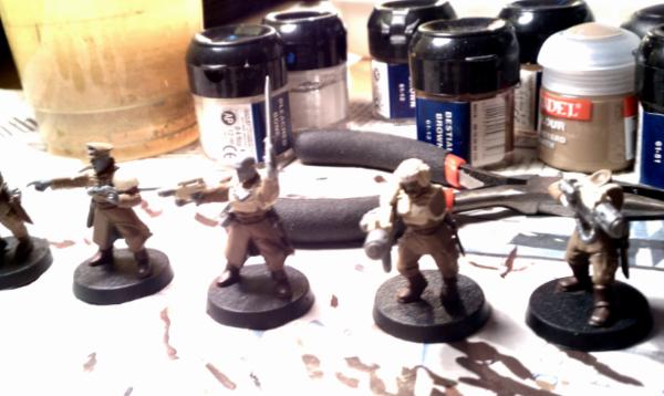 Looks good - I don't see many IG browns around my way. What do you use as a basecoat under the Devlan Mud - do you go for a Dheneb Stone foundation, or a Kommando Khaki, or something else?