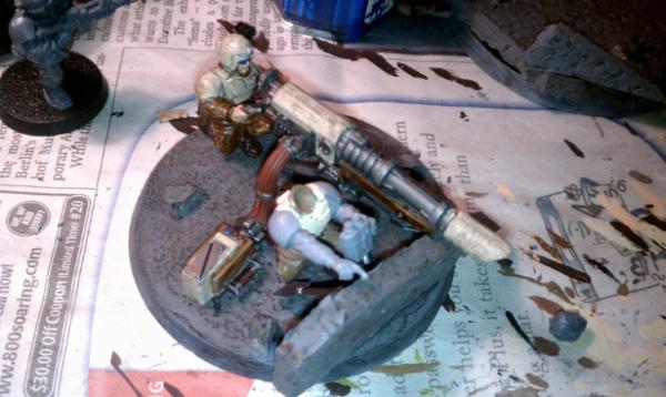 I need some ideas from you guys, i have one Heavy weapon squad laying around, and i want to be able to put all the options on it... so ideas i have right now are Mortars on a small base, missile launcher mounted on guardsmen arm.. and the AC, HB and LC. can just be switched out once stand is set up correct? so Really i just need to put gunner on a base and get models for the missile launcher... If you have comments or thoughts on those ideas please say or if you have a different idea! Also i want the bases to be made so like its a set up defensible position so like sand bags or boulders or like camouflage,m you get what i mean if not something like this: http://www.ailarian.com/folera/about/melchoir-showcase/index.html i thank Ailarose for those models, I want them to look like the heavy bolters, to see them scroll all the way down... (make sure to enjoy the other GREAT models while you scroll) So any ideas on what kind of material to make those barricades out of would be nice, also the one thing with The pic is those HBs dont use the stand, so make sure your ideas account the stand!