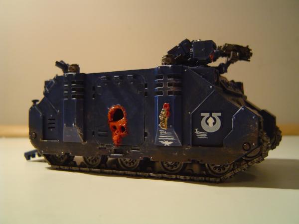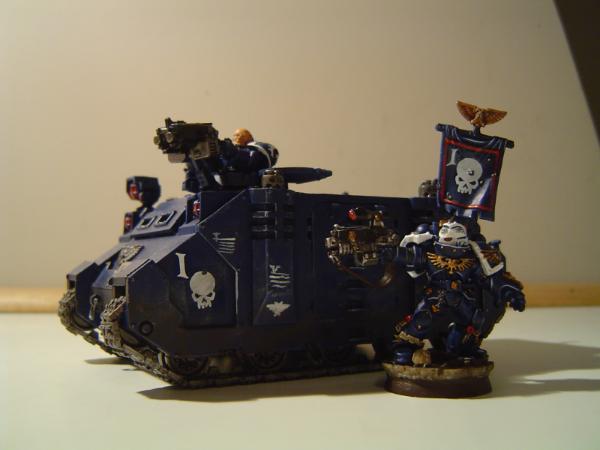 what do you guys think of him?? i had to add the skull to the banner as to match their dedicated rihno wich has a skull as mark for transporting veterans ( he's finished and will be updated soon)