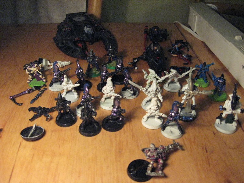Top picture has an Eldar Falcon grav tank, some Wraithguard, out of production Dire Avengers and Striking Scorpions, a Vyper jetbike, and some Guardians.