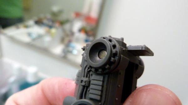 I'm going to magnetize either the weapons or the whole arms on the plastic killa kans I'm building. Which makes more sense--the arms, or the weapons? The set doesn't come with any extra weapons, so this is mostly to give me the option of swapping in parts from elsewhere later. The weapons seem easier, but all the online tutorials I've found have done the arms. This is my first try at using magnets.