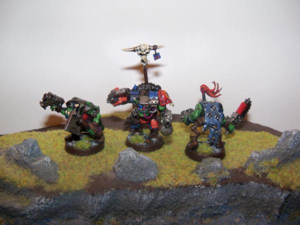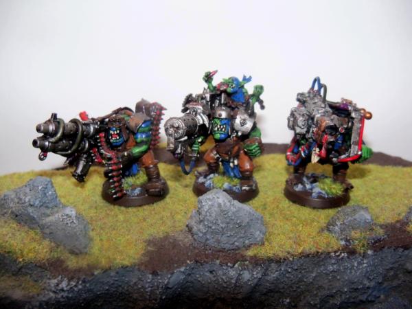 40K doubles last year, and they count towards my Grodgob's Lootas army. All the figures have extra gear and the like on them from enemies they've slain, and I've tried to paint most boys with at least two clothing colours to represent them nicking scraps from the dead.