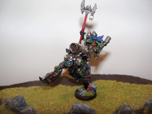 Big Mek Zubgrod and his prize Deff Dread, the Dread was a gift from Aurelia which she scratchbuilt for me.