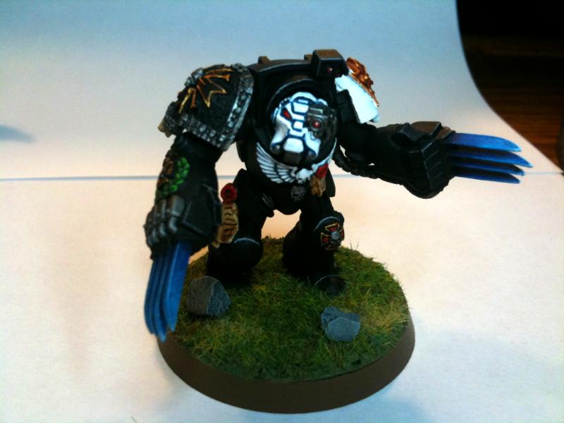 Very nicely painted models you've got there! The champ looks great, but the armor seems a tad...what's the word...not bland, but it looks a little undeveloped. Don't get me wrong, your edge highlighting is great but the areas in between seems a tad flat to me. Now the laurels and the sword look terrific, as do the lightning claws of the termi.