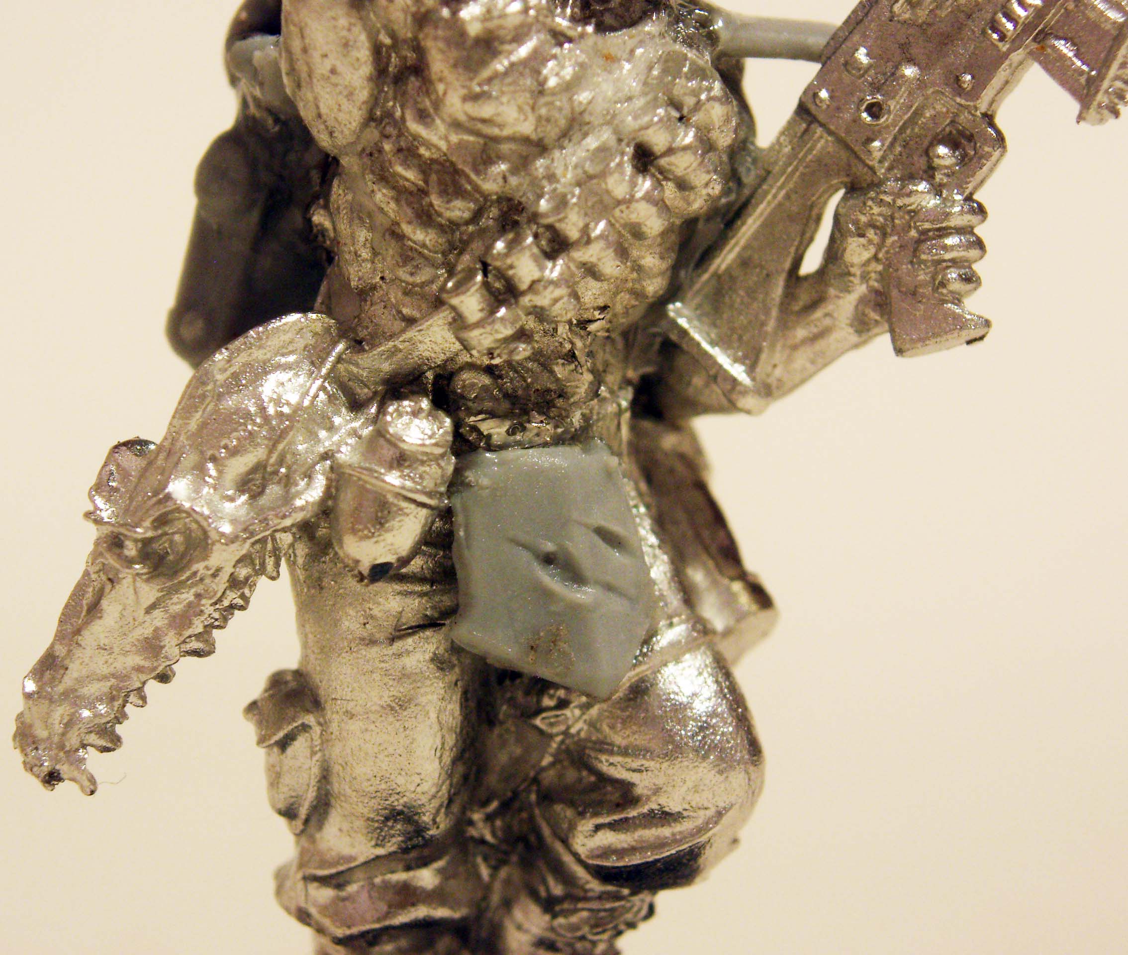 The head, back pack and pads are from the FW Chaos Enforcer set, i've been using them as my veteran sargeants and penal custodians, so he'll fit right in with them! ^_^ Automatically Appended Next Post: Damnit! didnt spot that one!!! lol will file in the morning!! ^_^