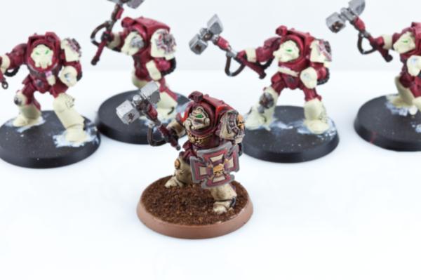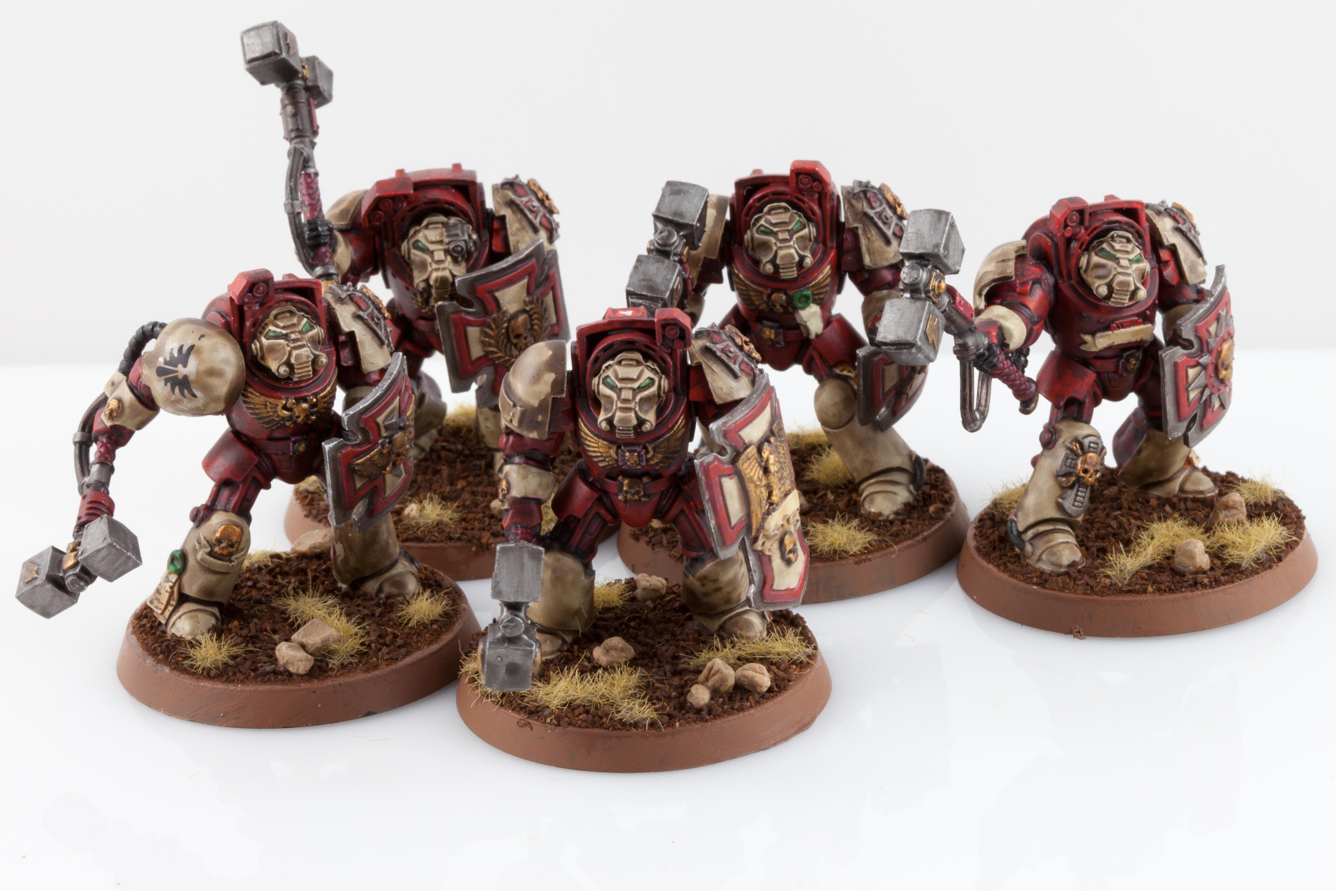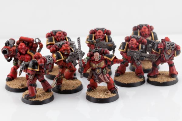 AoBR set. The goal with these guys was just to get a first pass done. Try out a new shoulder pad combo, and leave all of the highlighting etc for when I come back to them later. I dont trust myself with skin tones yet, so the sargent just got a coat of flesh for now.