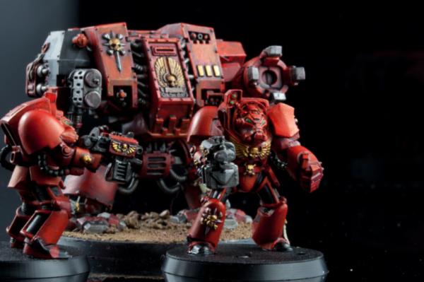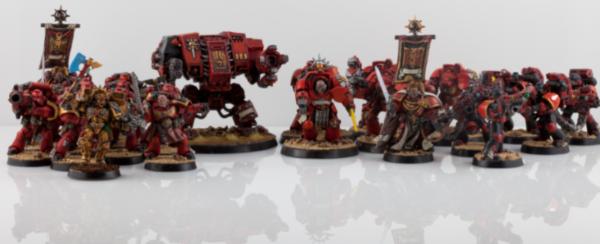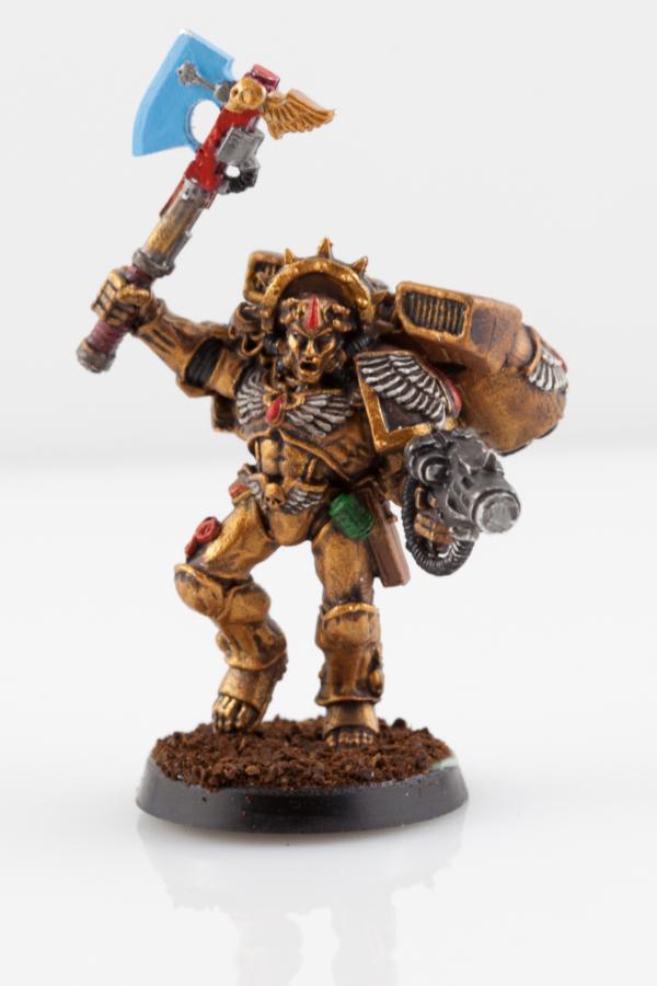 Automatically Appended Next Post: Dante was up next. Didnt want to give him the super-shiny typical paint job, I wanted him a little more battle worn. Gold armor certainly isnt easy for a neophyte. First pass + wash is where he sits for now, awaiting improvement on my part to clean him up. I have a box of sanguinary guard awaiting attention so I wanted to try out the gilded armor on one model instead of ruining 5.