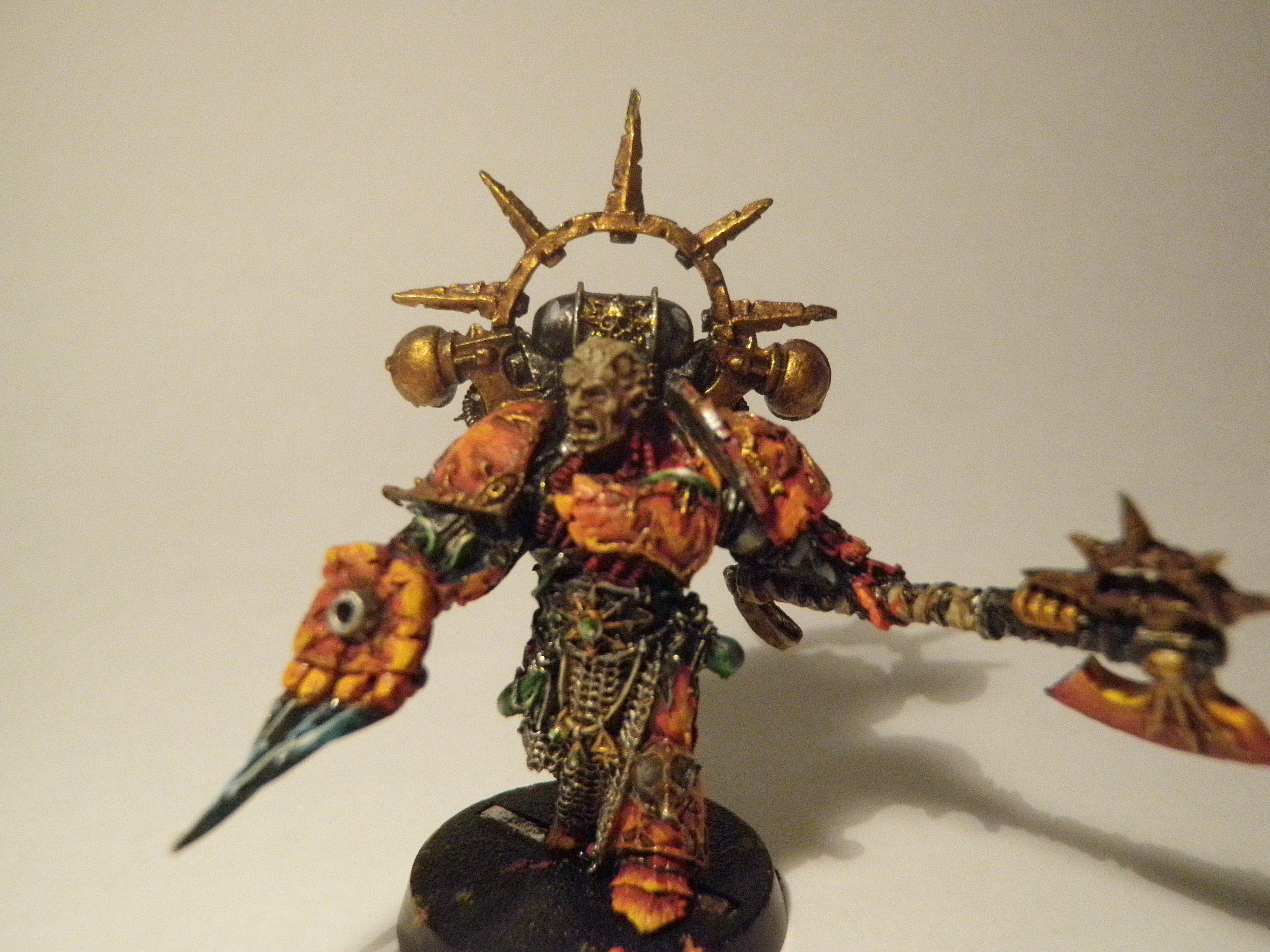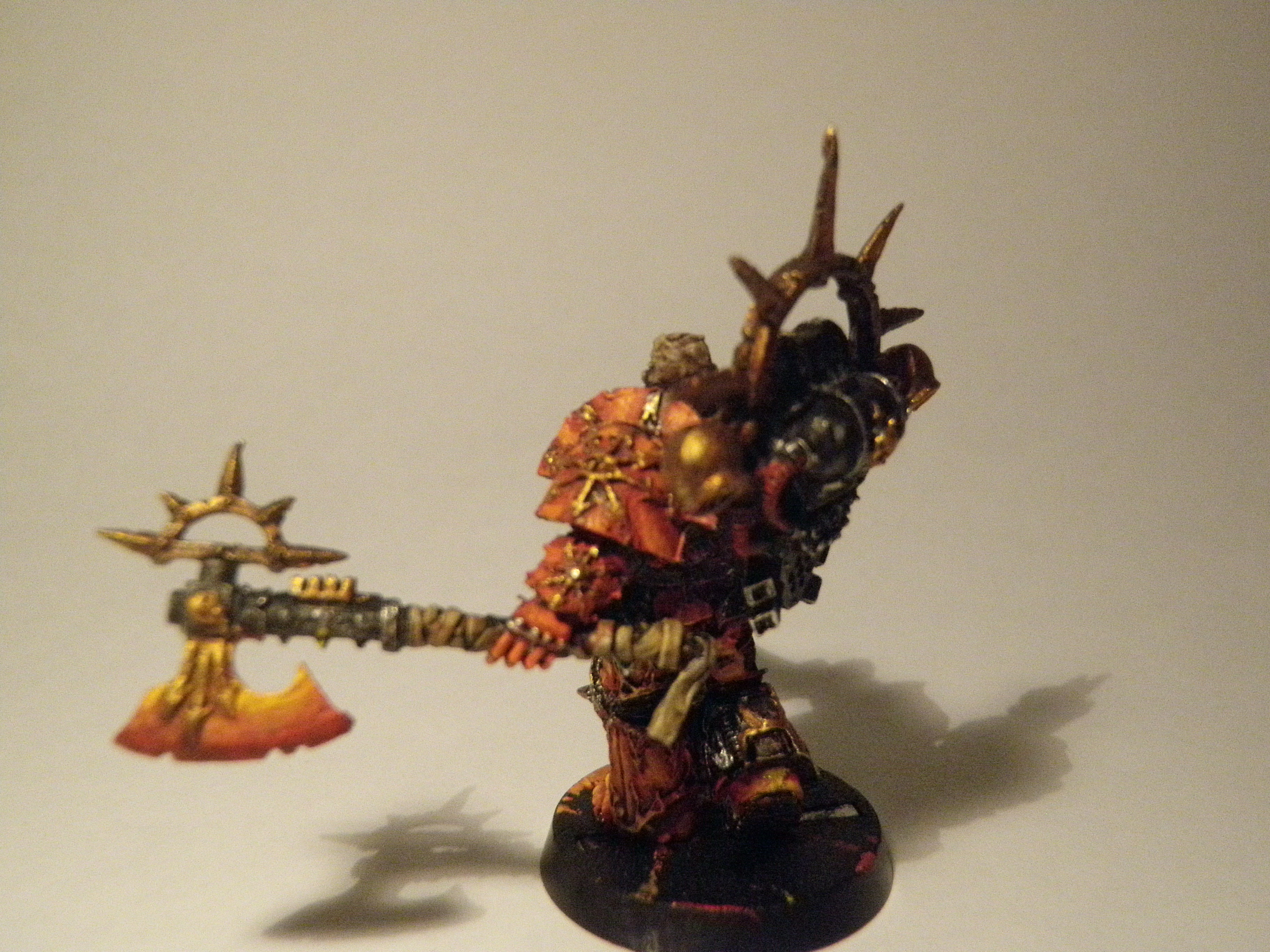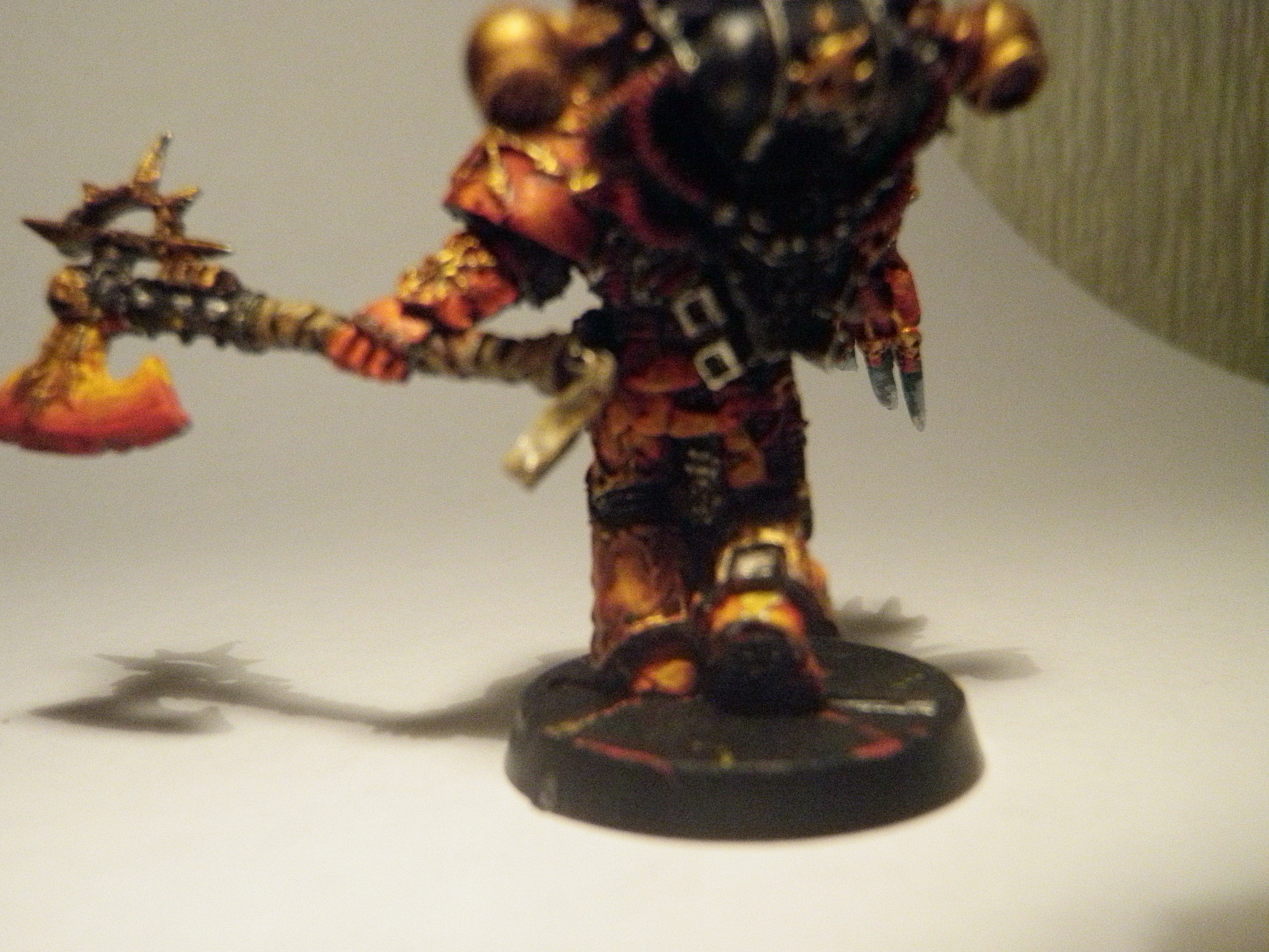 His axe is very impressive, I like the way it's blended. I would definately hit the face with more highlights, and thats just because faces are always what I focus on when painting a model.