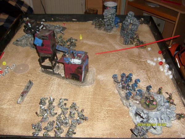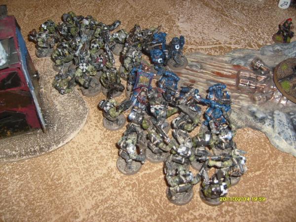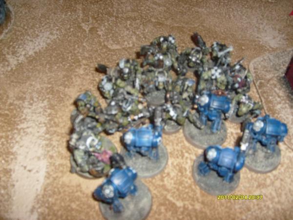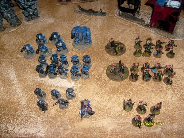 My friend played with his Ultramarines and some of my Catachans and I played with his Goffs.