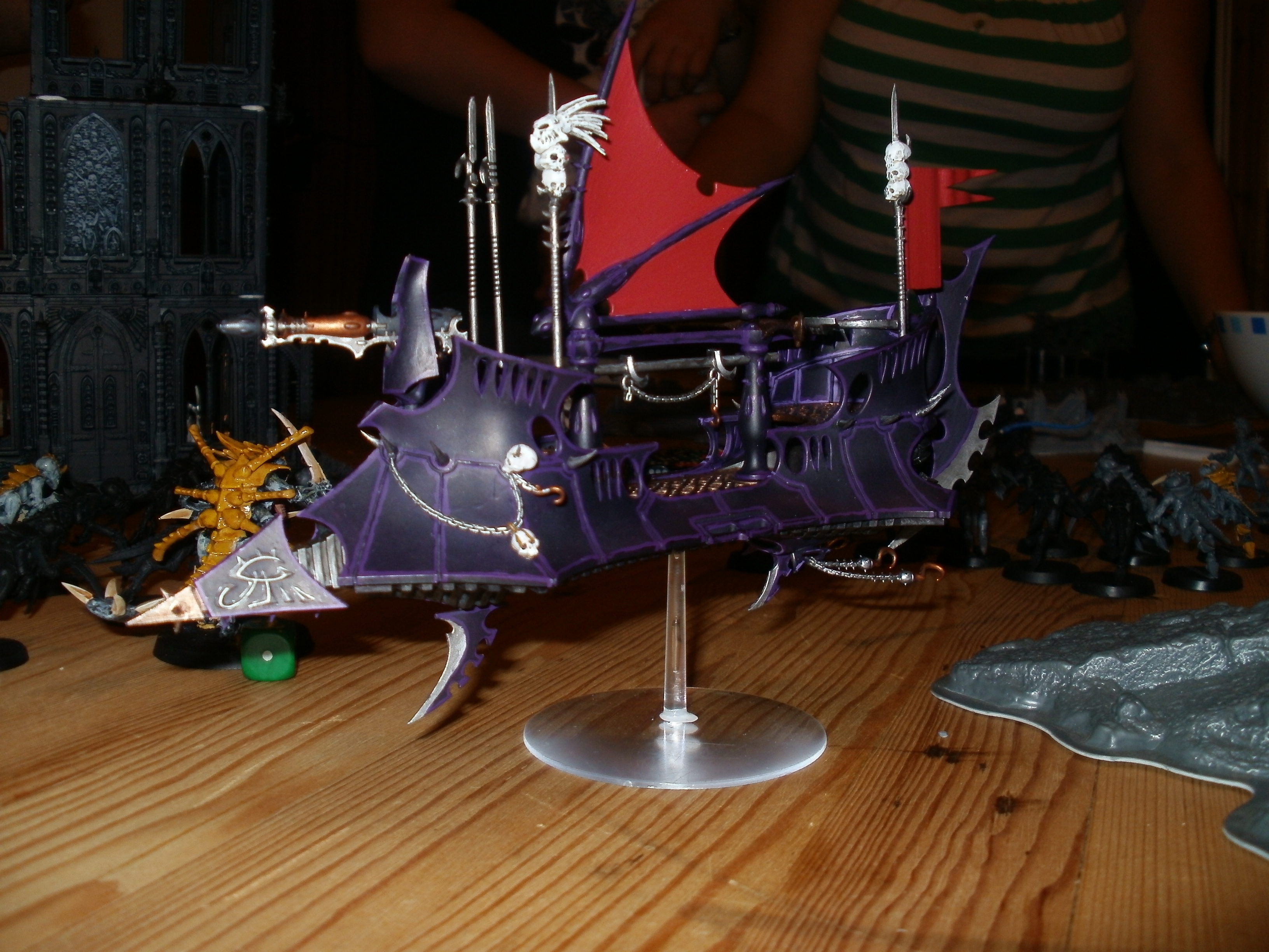 The Warriors and another unit of Gaunts finished off the Warriors completely, leaving only 2 Wyches, the Raider (still out having fun), Lelith and a unit of Incubi that was slowly being dragged down against Genestealers. Automatically Appended Next Post: The turning point of the game only came about due to the Raiders crew being shaken. In a now infamous 'Heck, why not?' moment the Raider decided to make a pass over the central Gaunt and the Warrior broods, hoping to make a number of kills on them both. 3 Gaunts were killed, a drop in the ocean really, but the Warriors were a different story. 4 chainsnare hits, 3 wounds and 2 saves failed meant that both warriors lost their last wounds, leaving the way clear for the now rallied Wyches - who went on to kill all the Gaunts on the nids right, completely turning that flank against the odds. In the centre, the Incubi were slaughtered, but in return the Genestealers were also finished off along with the Tyranid Prime. The Archon passed his Ld test, doubling his strength due to his soultrap helping to finish off the Stealers and gain his second pain token in the space of a turn.