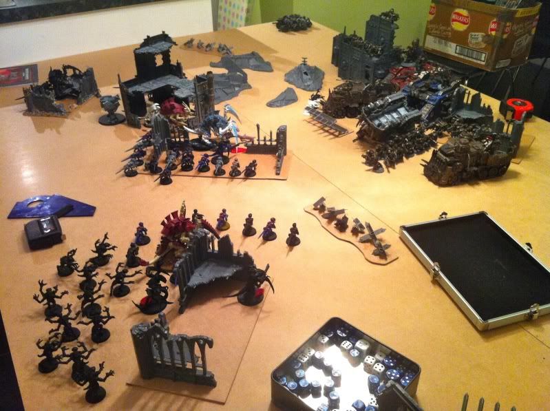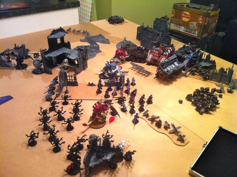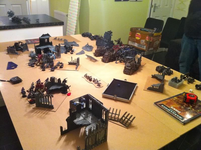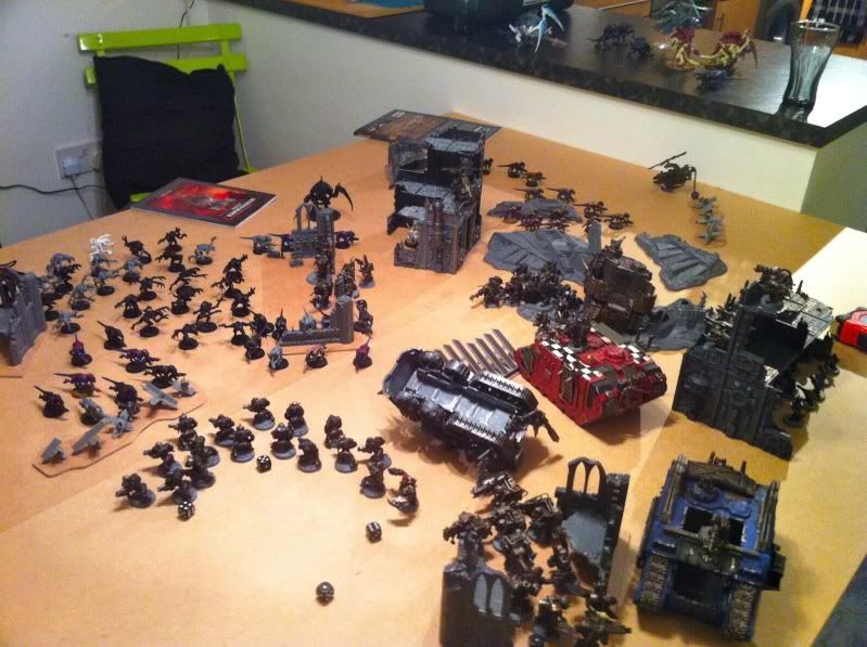 Daves turn he attempts to spawn some Termagants and burns two Tervigons out straight away if I remember right, he then starts his move towards me.