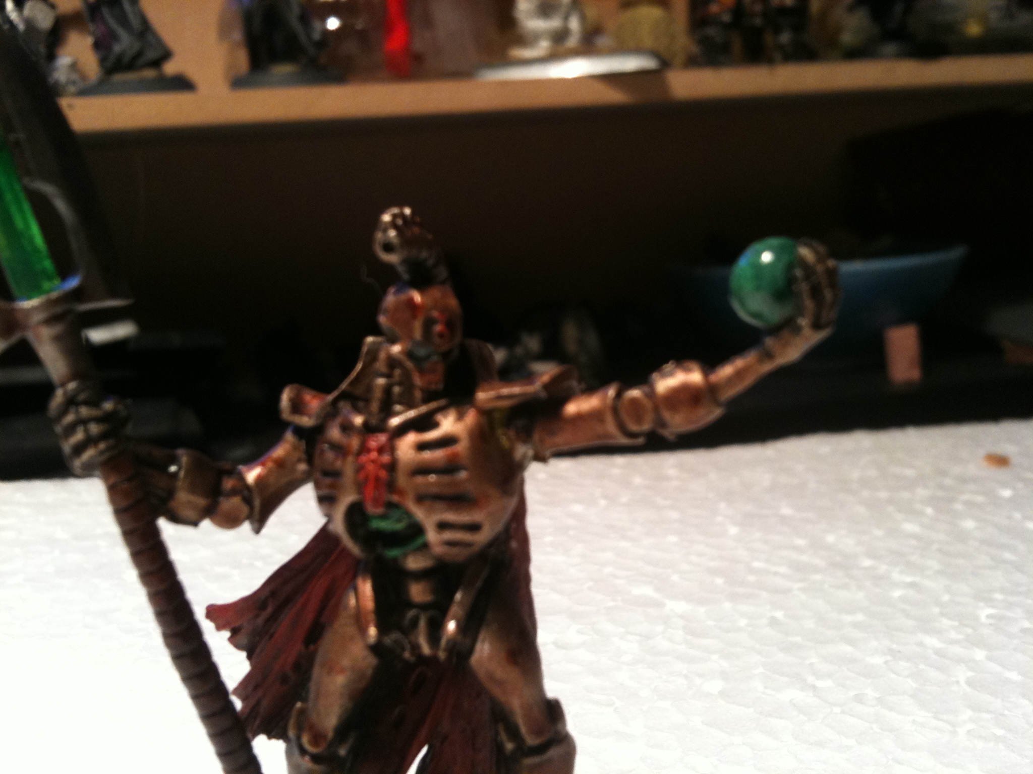 The Necron lord is the only examplr I have... Which I was trying to make look bronze, but it really works! (I have about 6 coats of sepia)