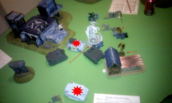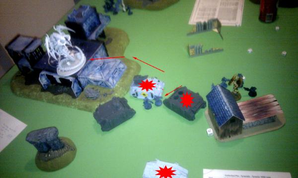 Everything moves and runs forward, with the exception of the Hive Guard who move forward and shoot the vindicator causing an immobilised and a stunned result - phew!