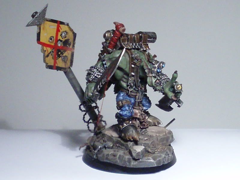 My first Orc/Ork i've ever painted, the skin looks a little saturated in the pic but i'm happy with the overall model