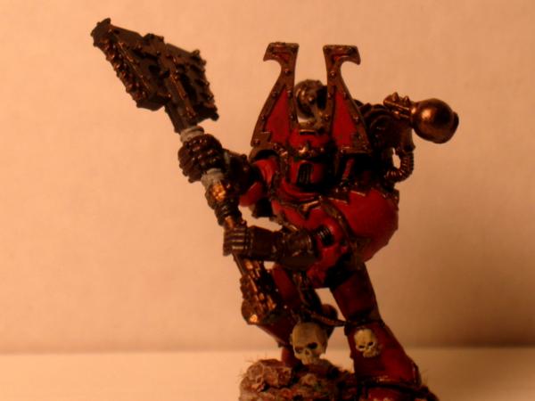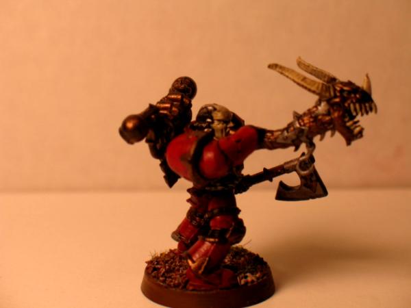Those are some really cool World Eaters. Which head did you use for the guy that looks like a skull with the Khorne symbol on it in the 9th picture?