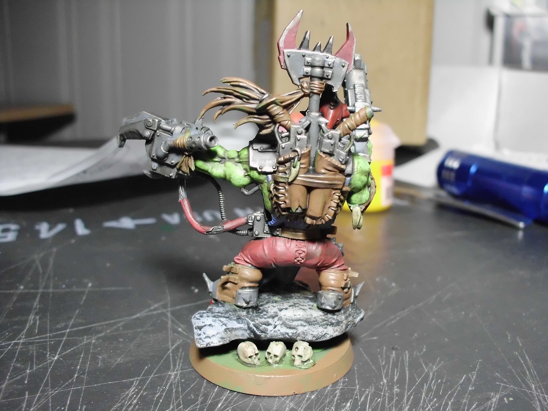 I figured "Why not make a blog on me making my ork army? Someone might keep track of it." So here I am, first I'm going to show off my warboss I modified some, just turned the head and gave him a gs neck...it's not pretty...but it works...I also gave him a squig that sits on his shoulder
