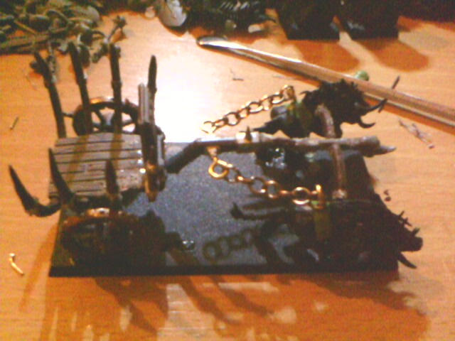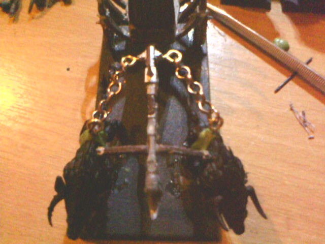 TBH I would love to see the chariot pulled by some converted Flagellants slaves or even daemonettes. However you have make some nice work with the greenstuff harness and it would be sad to waste it.