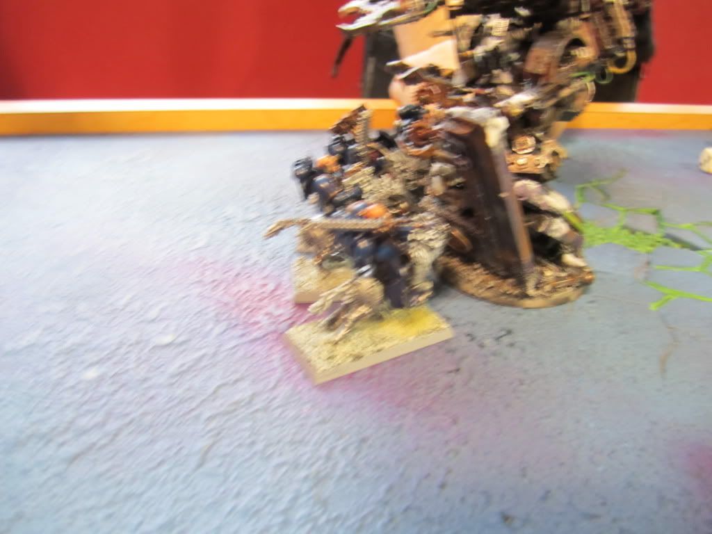 The Wolf Guard quickly became the target of much enemy fire as the Stompa, and much of the Tyranid swarm, fired into them. One by one, the Wolf Guard fell to a blistering salvo of rokkits, shells and bio-ammunition, until only one stalwart warrior remained.
