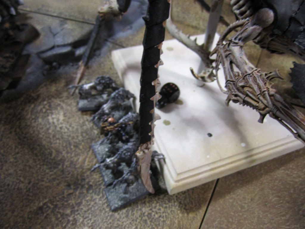 With the last Ymgarl dealt with, the Assassins and Wolf Guard charged the Doom, once again resisting its soul drain. Though they rained blow after blow down upon the foul creature, however, not one managed to pierce its crackling warp-field.