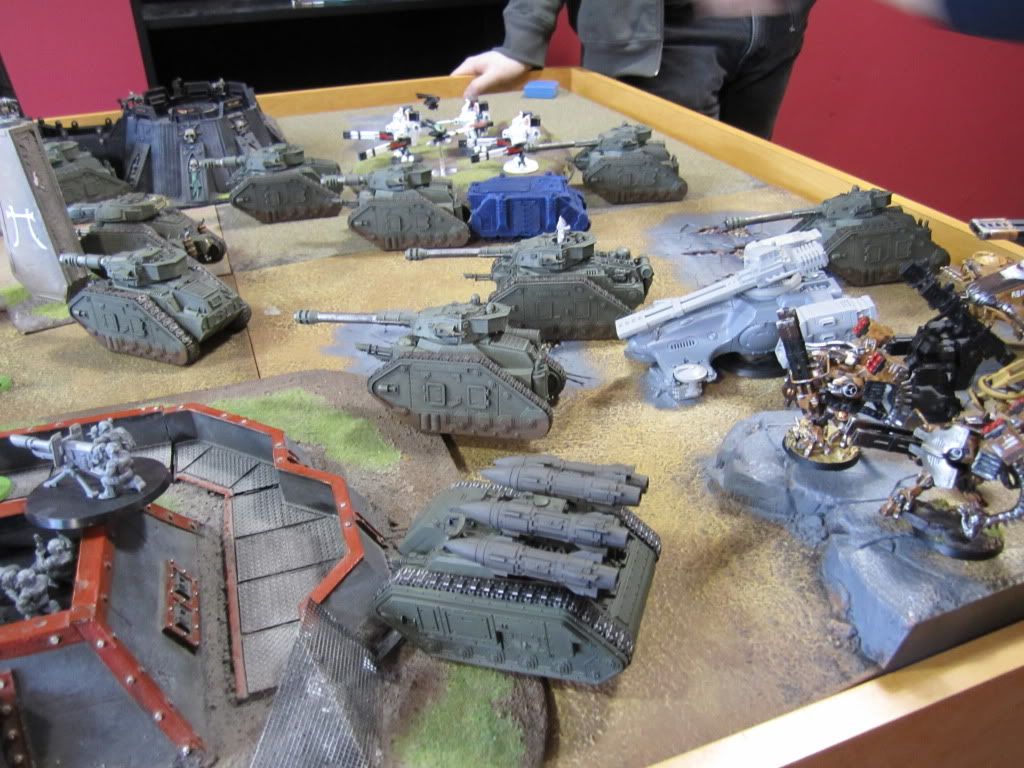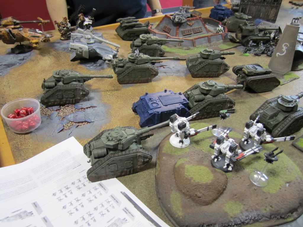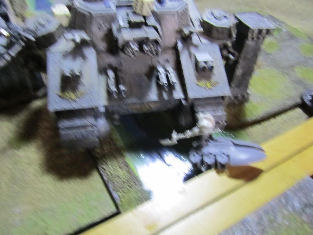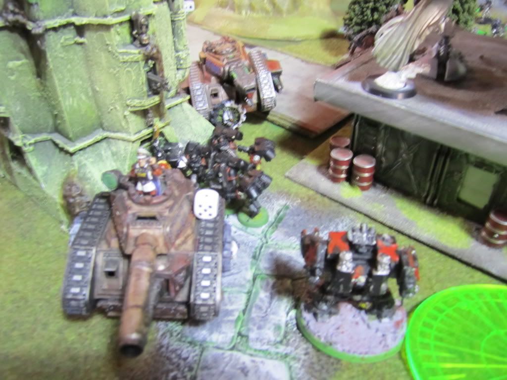 The Stompa unloaded its full arsenal on the Imperial tanks, immobilizing the Terminus Ultra, wrecking one Exorcist and shaking another.