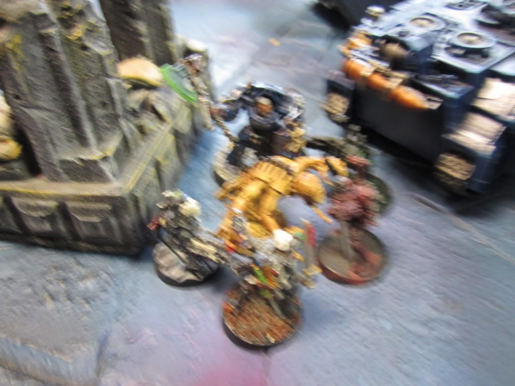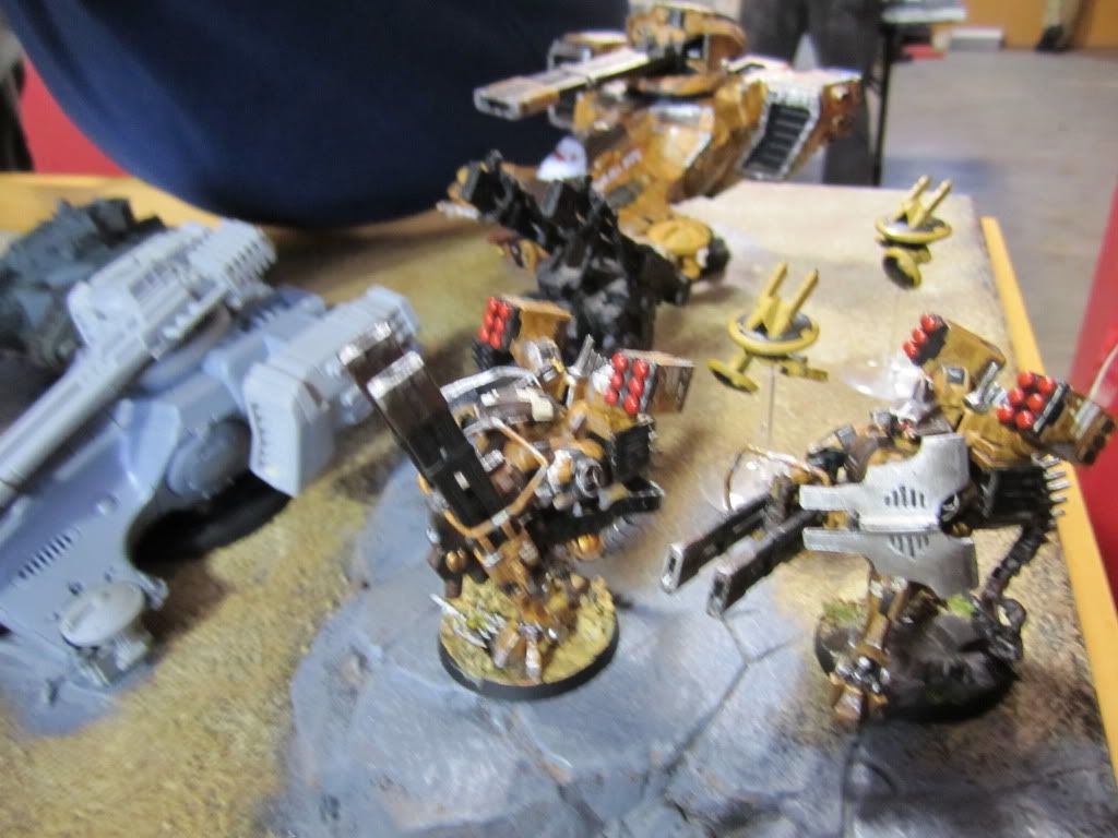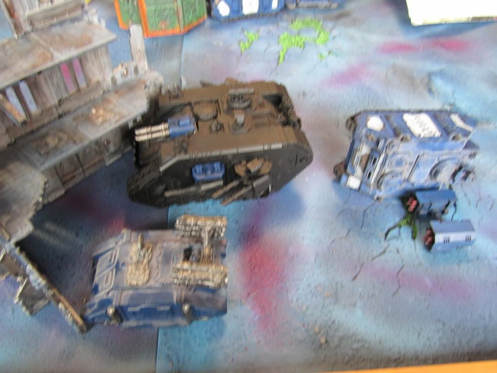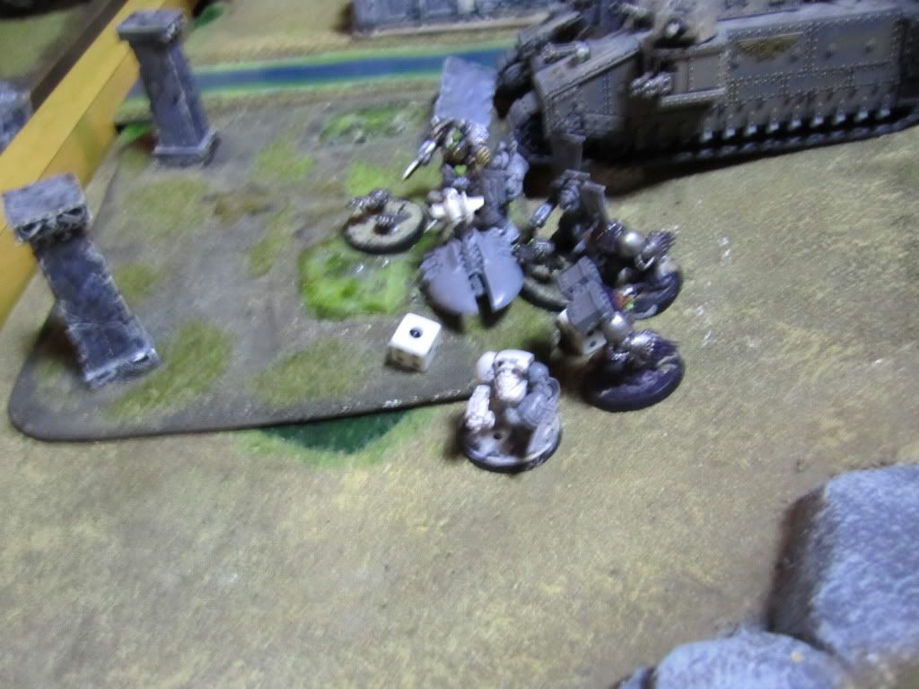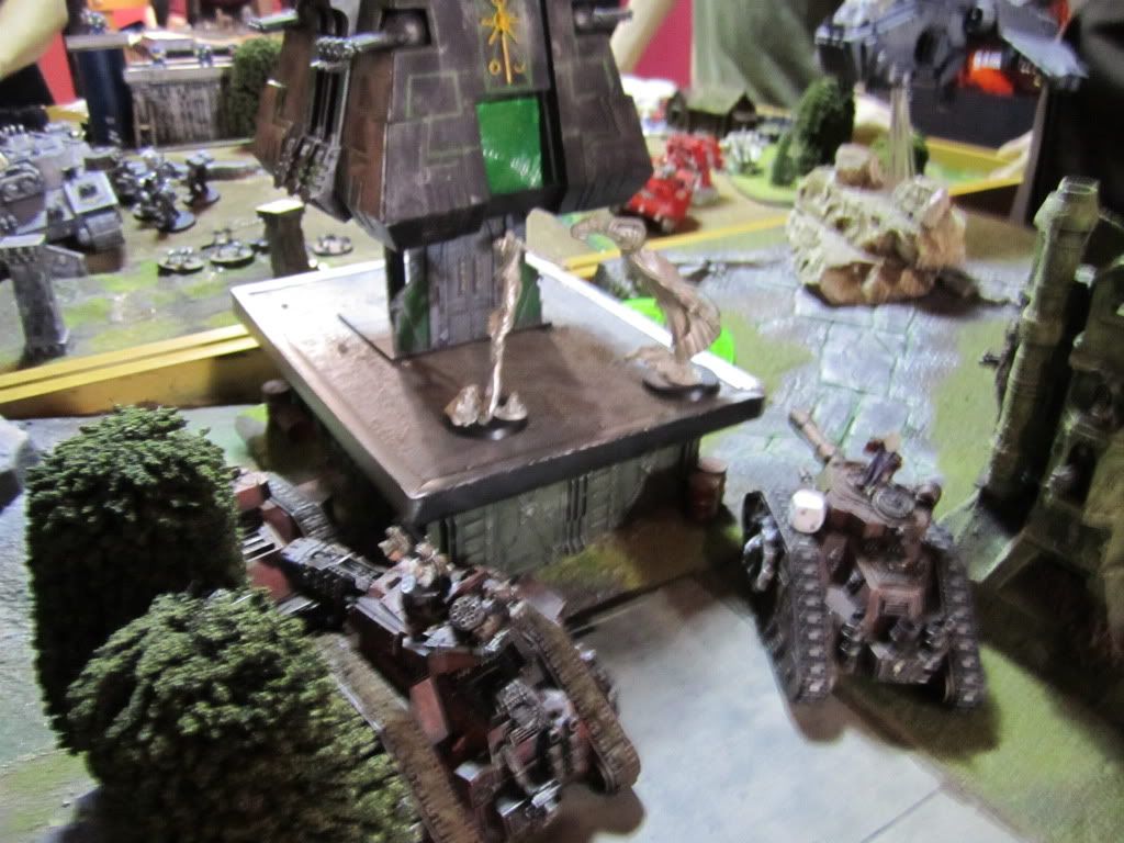 The Stompa unloaded its full arsenal on the Imperial tanks, immobilizing the Terminus Ultra, wrecking one Exorcist and shaking another.