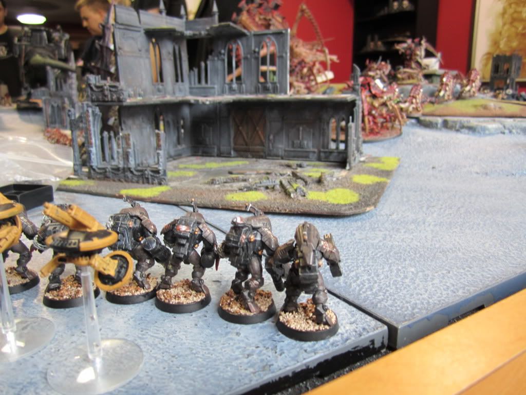 At a hidden command, the Inquisition authorized a counterattack. From out of the shadows, four Eversor Assassins bounded towards the surprised Ymgarl Stealers.