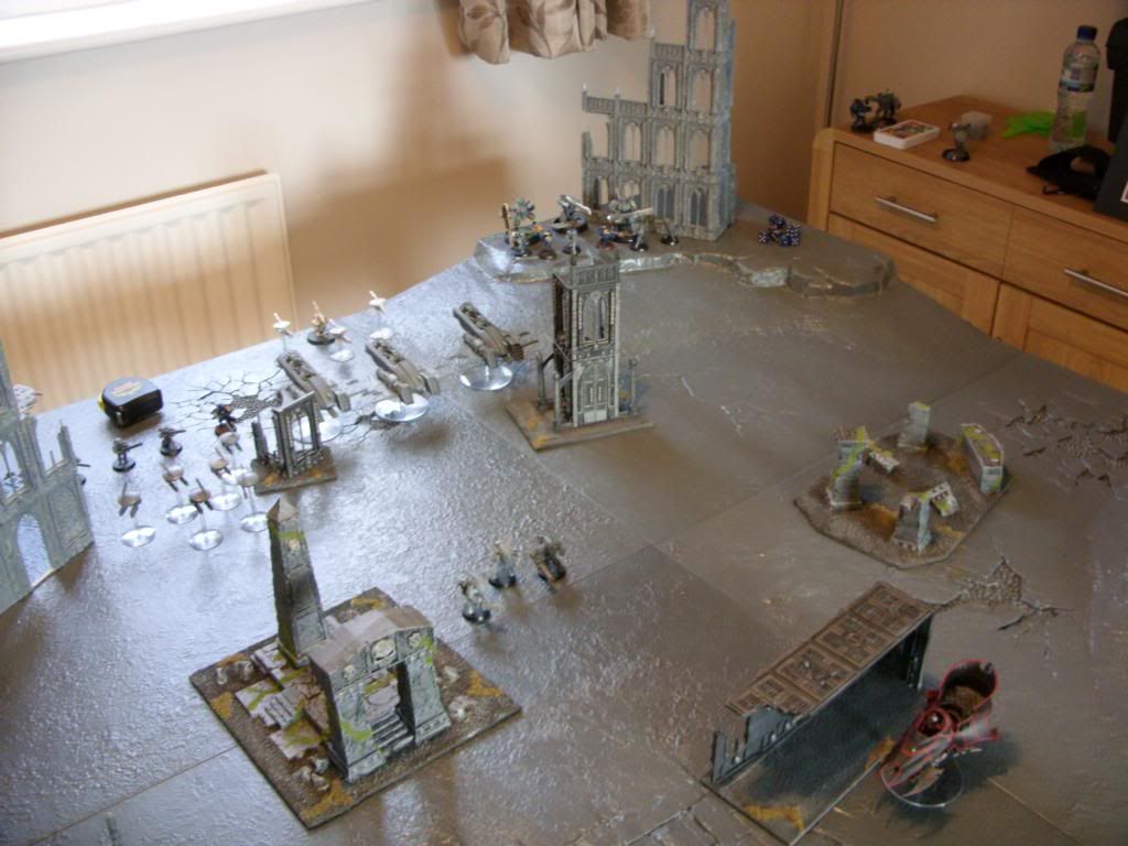 My friend brought his tau round we rolled pitched battle and annihilation I won the roll off and chose to deploy and go first.