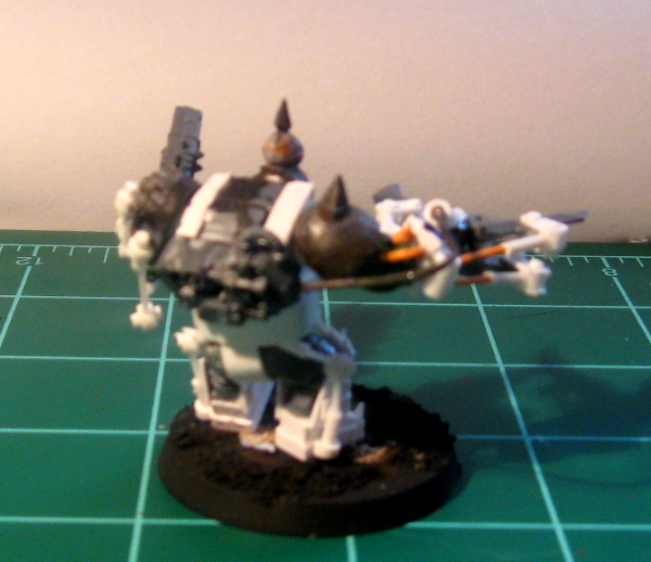 I like it, definitly orky. Maybe do some battle damage on the crux terminatus as well as painting over with an orky symbol? Just to give it a battle damaged/ not maintained equipment look.