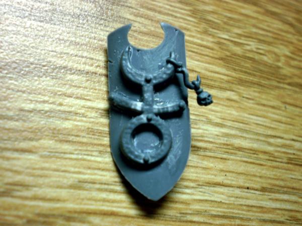 As a solution, a friend of mine suggested that I simply plant the symbol onto one of those fancy shields that I"m not using. I liked the idea so much that I used it. Obviously it's a big off-center, and covered in glue speckles and file scratches... But hey, it's still better than a pole in my opinion. Anyway, Im soon to be at work on my next Chosen, hope to have one up by tonight or tomorrow.
