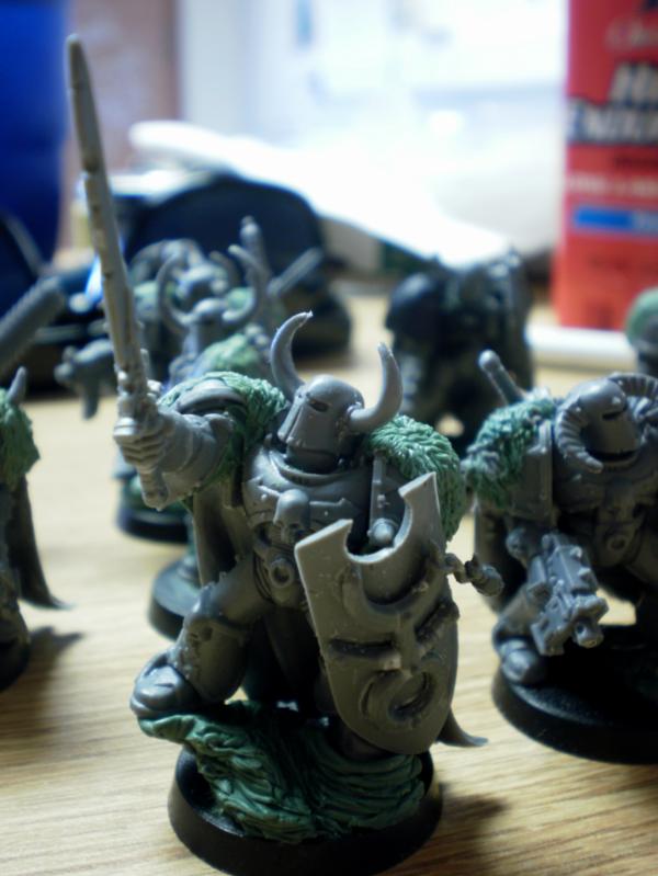 Thanks a ton! I'm planning on using them as Chaos Chosen, which means that eventually I'm going to be making at LEAST six of them, more likely eight of them. Four of them will be armed with powerswords, one with flamethrower. I'm hoping to get some use out of them as a Chaos version of genestealers; They'll hit unexpectedly, do a lot of damage when they do (hopefully) and look great while doing it!