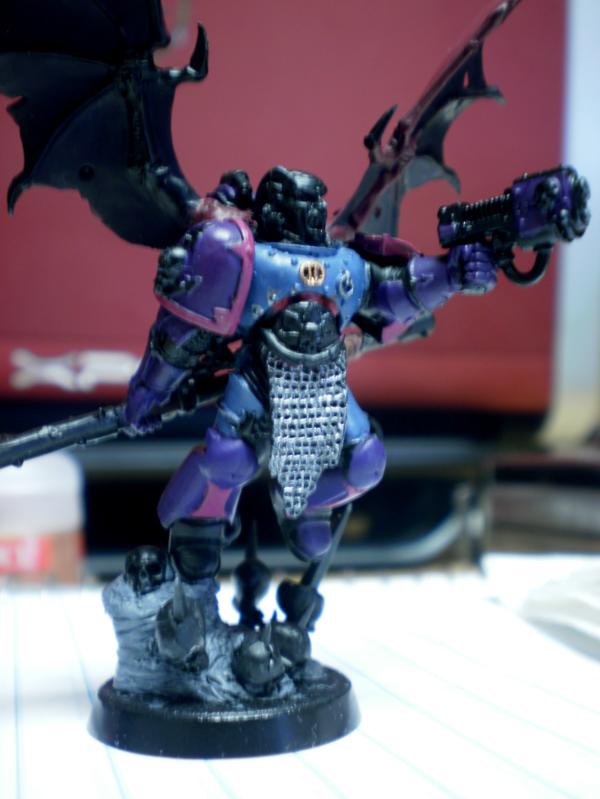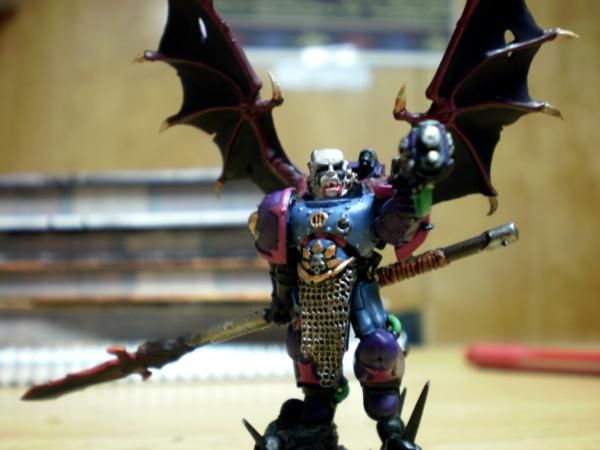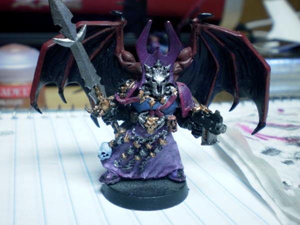 This is the first HQ I ever painted, and he's still my favorite. Also, he's technically my first 'conversion', although all I did was put wings on him from the possessed sprue. He's starting to show his age, though. This is from an era where I didn't thin down my paints at all when I painted. You can tell, I think.