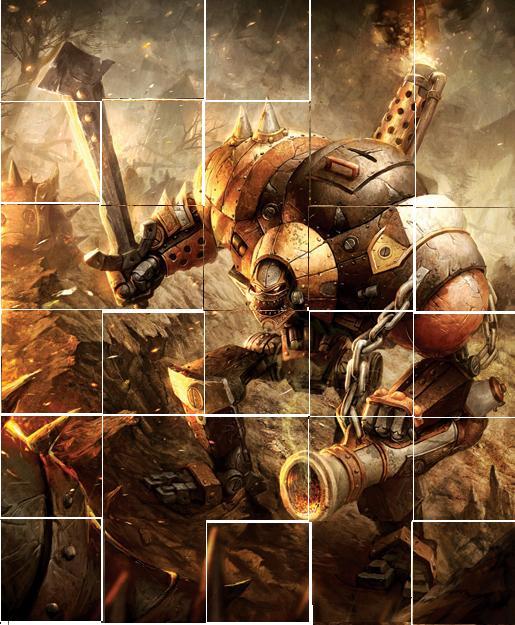 Privateer Press posted new art for a new Warmachine: Wrath Mercenary Character Warjack, "Rocinante". Just one problem.... it's scrambled. Can anyone who is better with photoshop than me unscramble it?