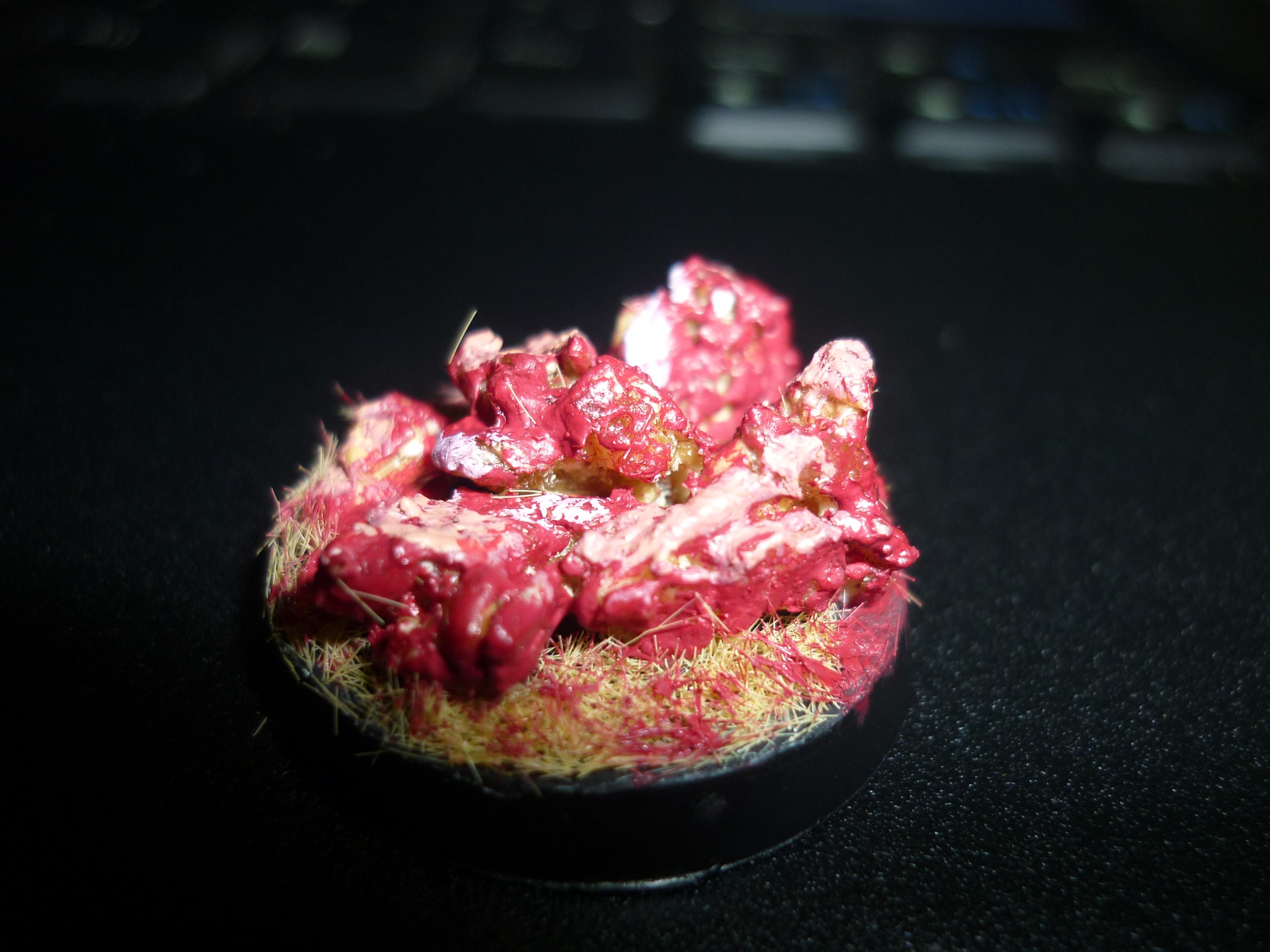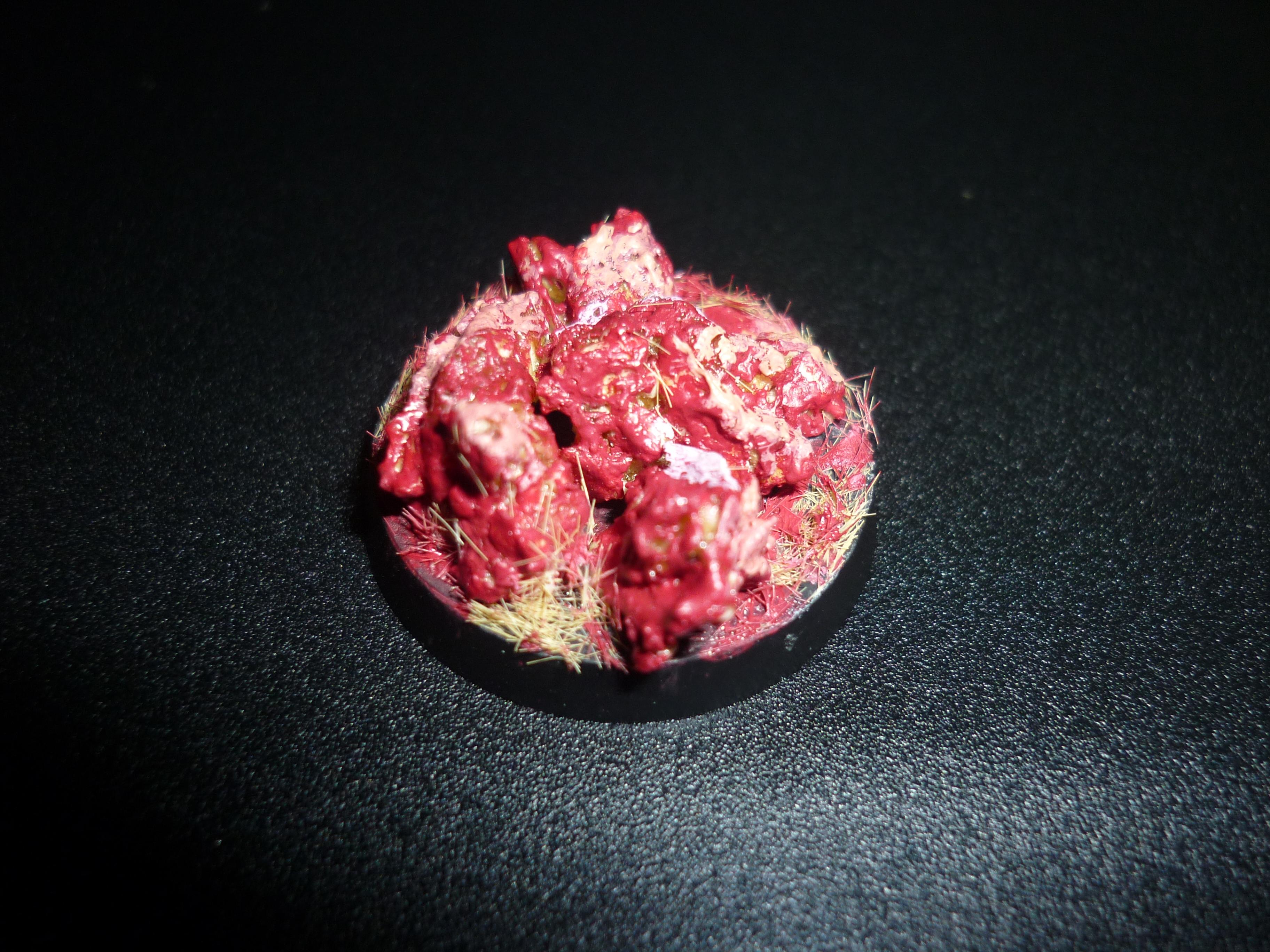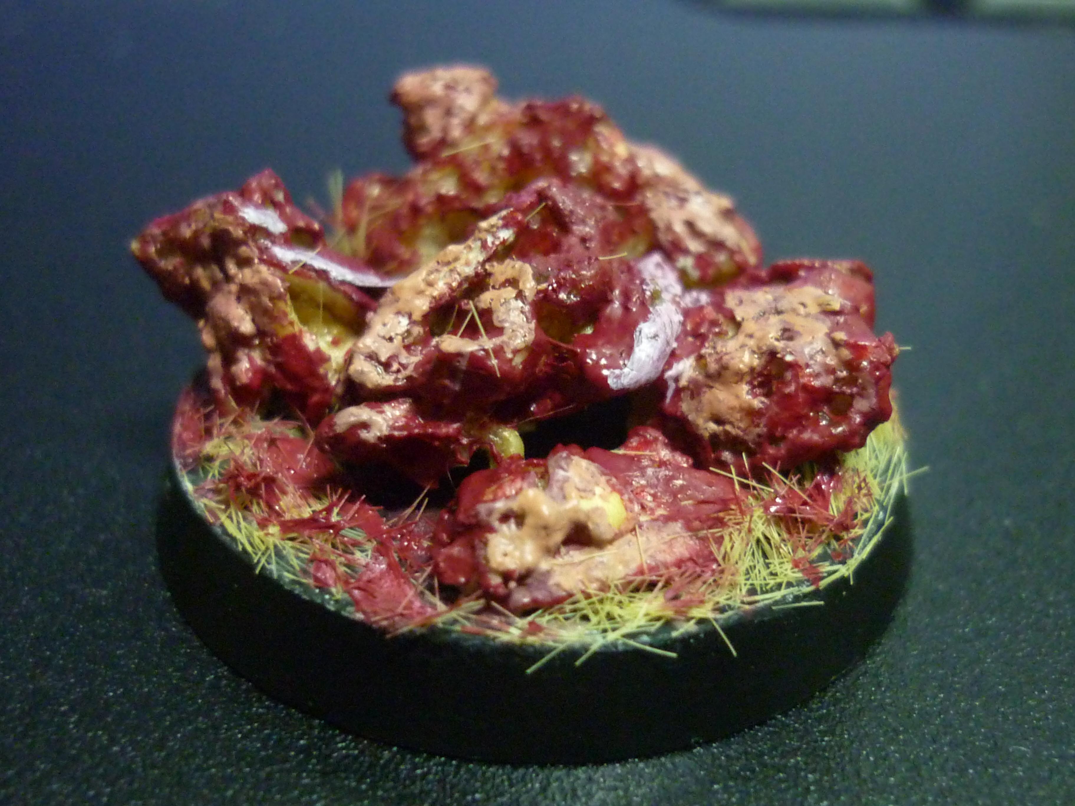 Surprisingly visceral. The scale, however, is somewhat problematic. For chunks that big, you'd expect to see some identifiable parts. It might work for a monstrous creature that recently exploded, but that looks to me like 90% of a guardsman, with none of the expected giblets. A man is but an assemblage of organs, be they in their proper relative positions or not. I'd advise either restricting these chunks to representing coarsely ground Squiggoth, or trying to find a smaller medium with a similar texture to represent more finely blended man-sized parts.