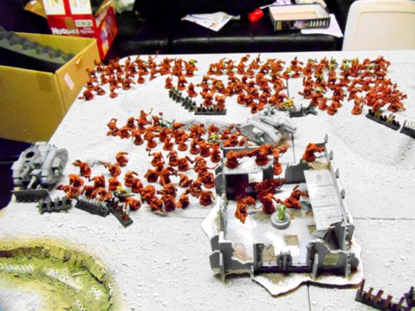 My opponent fields a massive ork horde wasn’t sure exactly what was in the list before we began play but it consisted of 198 orks and two vehicles!