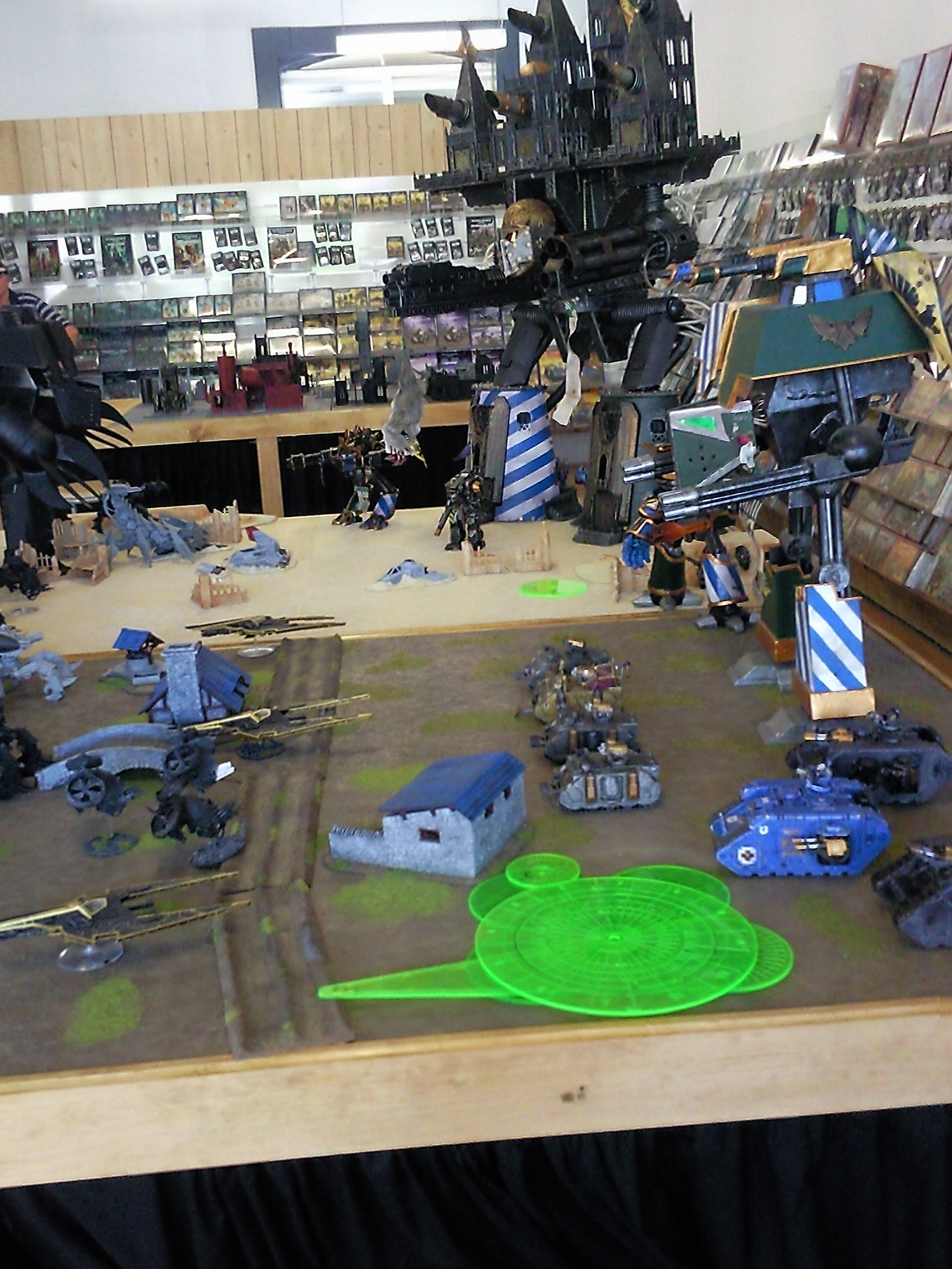 It's actuallly the right size to fight my Great Gargant I made for Games Day.) Put 40' of apoc on the tables between them, and watch the carnage.