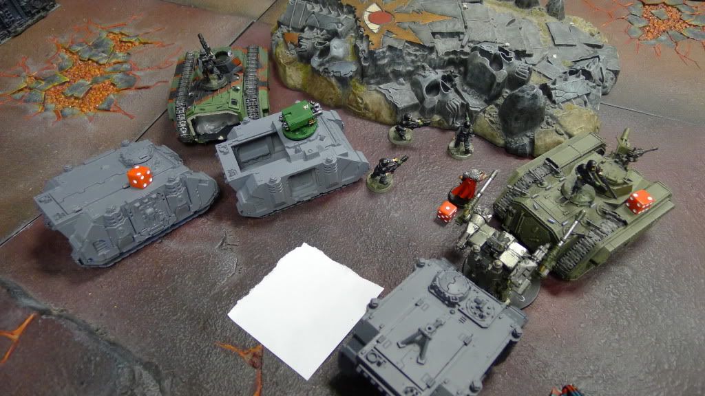Payback time! Grey Knights move. Chimeras pop smoke.