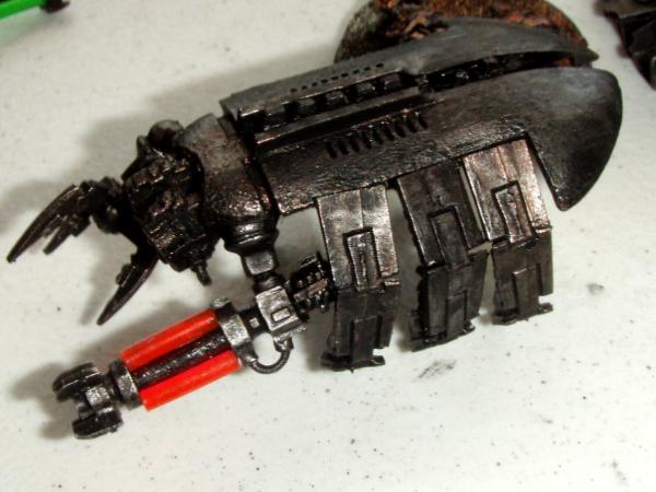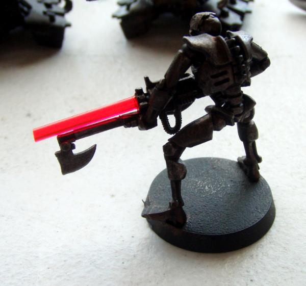 OK. I suck at painting. I know I do, I am in the process of learning. BUT, here are some shots of my DARK colored Necrons. I did Black base, then heavy drybrush of tinbitz, and a lighter drybrush of Bolt metal, and a final wash of Badab black. What do you think? Suggestions? My hands shake a bit so I know details are not great, but Grandma Lee gave me that shakyness.