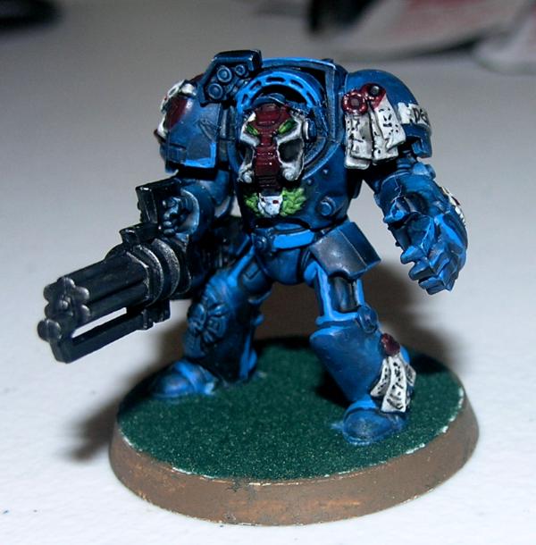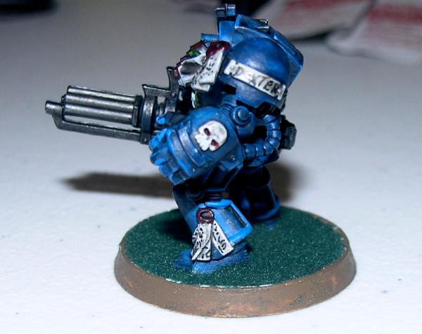 OK, here is my first ever Ultramarine. I really wanted a dirty (think freaking gun blast everywhere on an assault cannon) look, and want advice etc. As I said, my hands shake a bit, and I know I need to work on that, but advice welcome. He is Dexter. I figure he will kill a ton of dudes....
