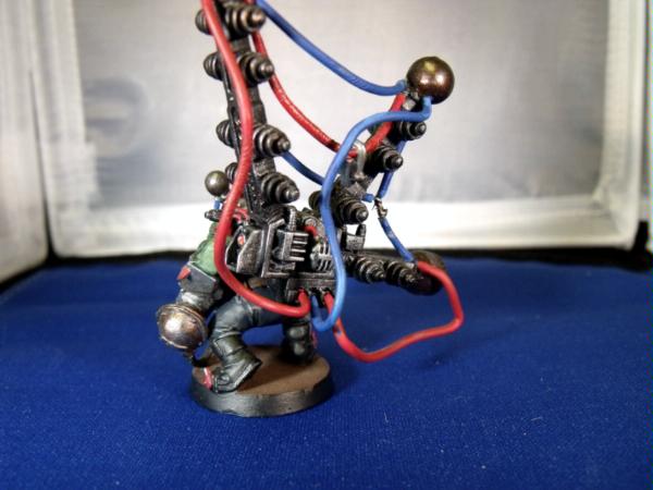I used a piece of "T" shaped sprue, the power cell and electro-fencing from the battle for macragge, part of a kustom mega blasta, and a grot to straddle the top.