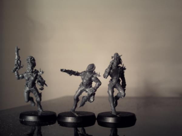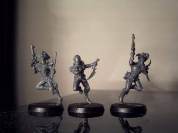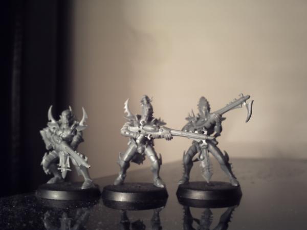 I also have pictures of the Wych squad, here are the three half-painted Wyches