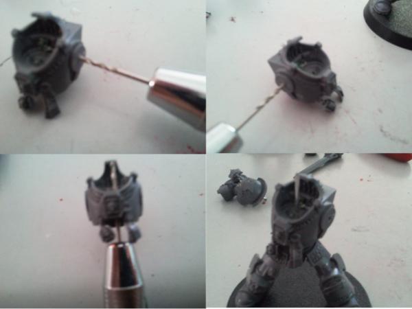 4) Now drill all the weapons hands, and superglue the pins into them; then apply a SMALL amount of fresh Green Stuff or Adhesive Putty into the holes and pins, in order to increase the drag and make them more stable.